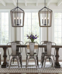 Although still rooted in traditional warehouse style, industrial lighting is now lighter and more elegant, making it ideal for transitional and modern spaces. Metal frames are thinner and more sophisticated than earlier bulky, functional styles. The mechanical ingenuity of the Industrial Revolution inspires style elements like working pulleys that are incorporated into the lighting’s design. Finishes are polished rather than raw, and lightly distressed wood combine with metal for a look that is streamlined and modern. Progress Lighting, Kichler Lighing and Feiss Lighting along with many other top lighting manufacturers have introduced products to carry the industrial theme throughout your space.